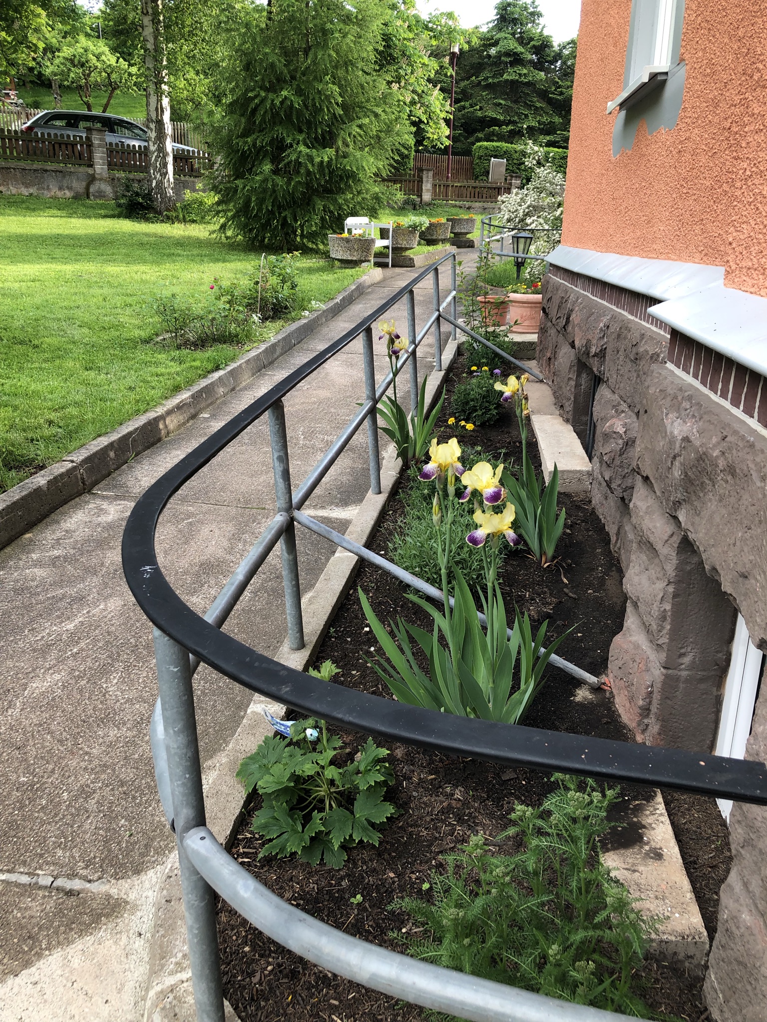 Im schattigen Garten um unser Haus herum können Sie verweilen. Oder die beliebten Thüringer Bratwürste grillen.